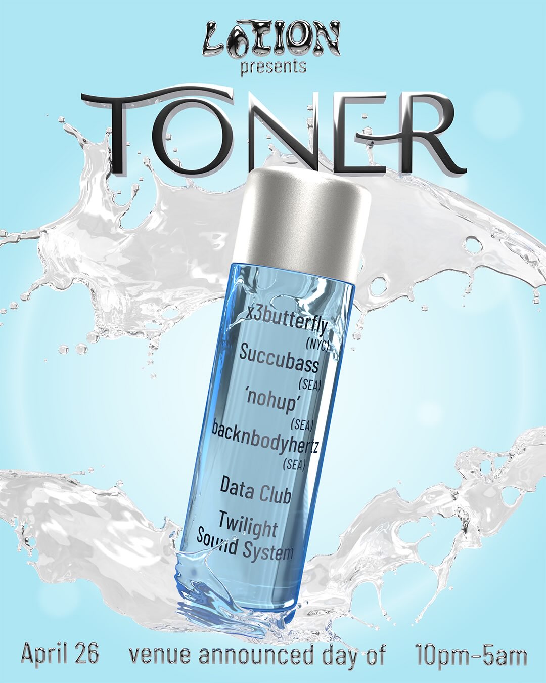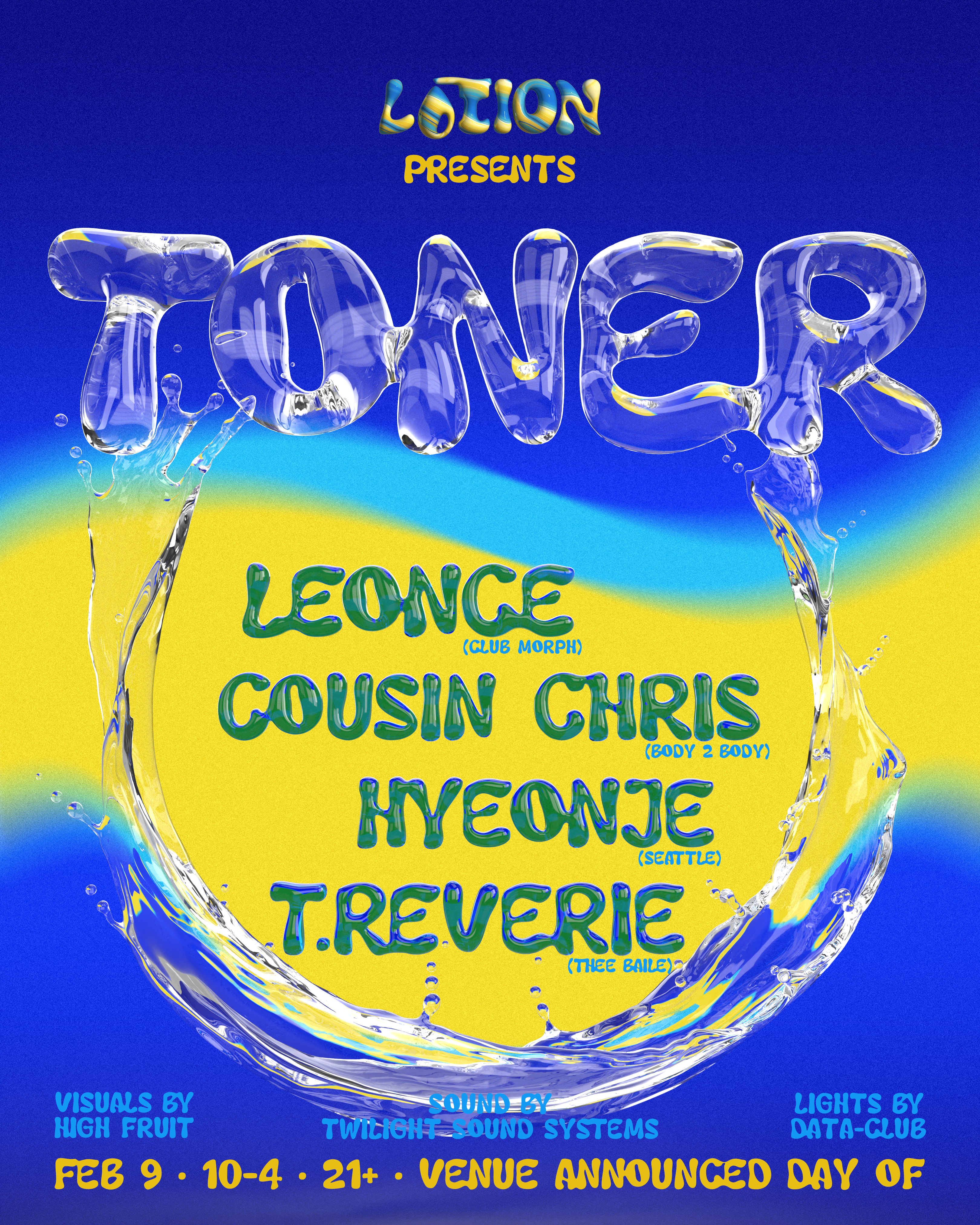 Founded in 2023, Lotion is a queer rave collective based in Seattle. We focus on underground parties that mix the ingredients of music, curation and community to make a lotion you'll want to lather on.