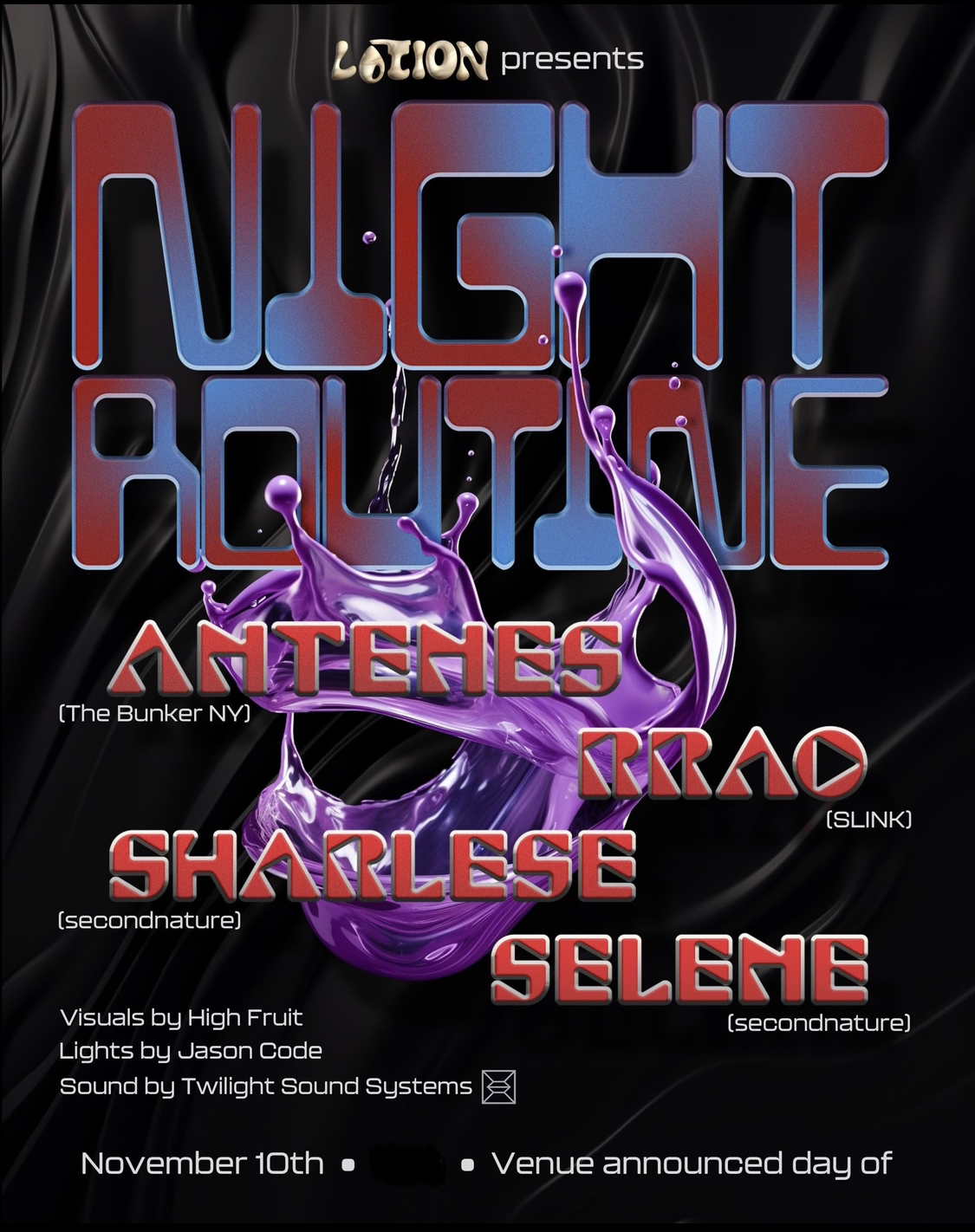 Founded in 2023, Lotion is a queer rave collective based in Seattle. We focus on underground parties that mix the ingredients of music, curation and community to make a lotion you'll want to lather on.